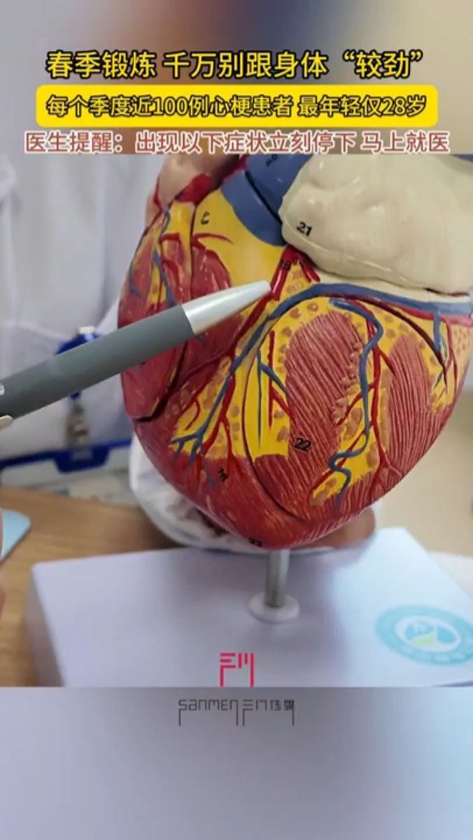春季锻炼,千万别跟身体“较劲” 。每个季度近100例心梗患者,最年轻仅28岁。出现异常情况,需要及时就医。#春季高发 #就医 #及时止损 #健康 #鲜甜三门 视频|周文艺 编辑|张磊 审核|方从飞 李佳宁