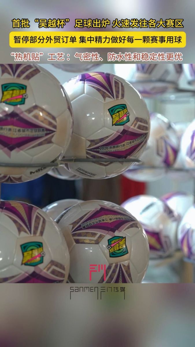 首批“吴越杯”足球出炉,发往各大赛区。三门健龙体育暂停部分外贸订单,集中精力做好每颗赛事用球。赛事用球采用热机贴工艺,球面无线痕,更显圆润,重量精准控制在430克,兼具优异的气密性、防水性和稳定性,脚感柔软,能有效减少运动员受伤风险。#吴越杯 #足球赛 #足球 #赛事用球 #三门 视频|李佳宁 郦华琴 仲午伟 编辑|郑铭洋 审核|方从飞 李佳宁