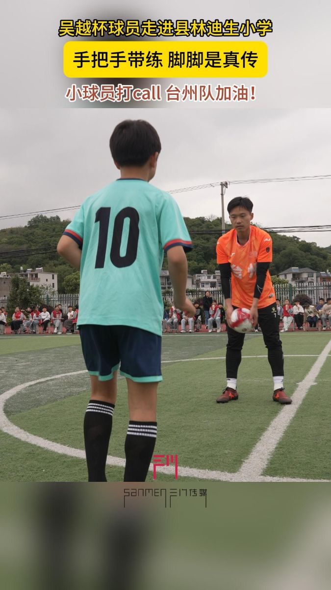 4月24日上午,“吴越杯”参赛球员走进县林迪生小学,与小球员开展互动交流。球员们手把手指导孩子们踢球技巧,现场氛围热烈,小朋友们也纷纷为台州队加油助威。#足球赛 #吴越杯 #踢球技巧 #足球技术 #体育精神 视频|李梦娇 刘娇娇 编辑|郑铭洋 审核|方从飞 李佳宁