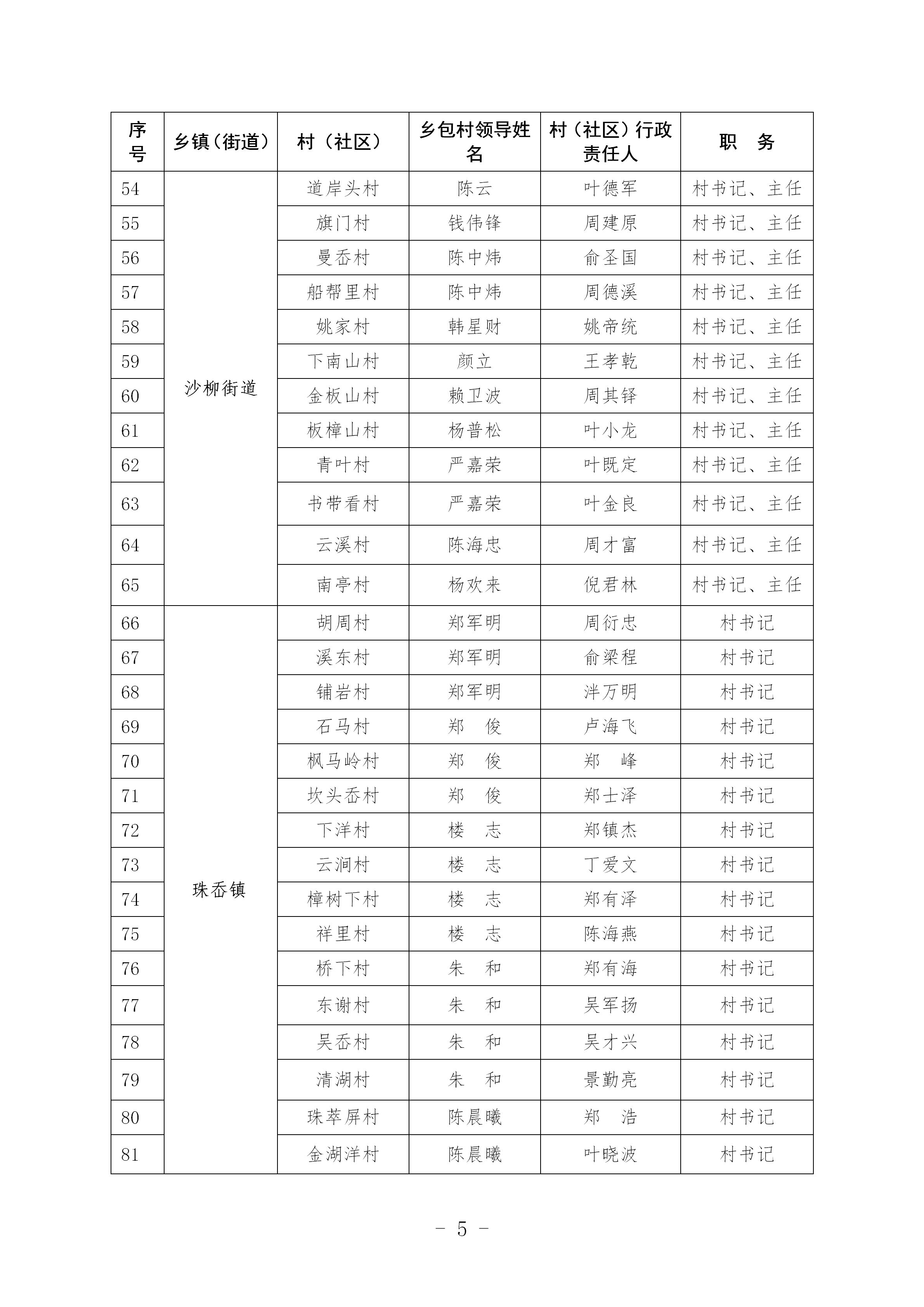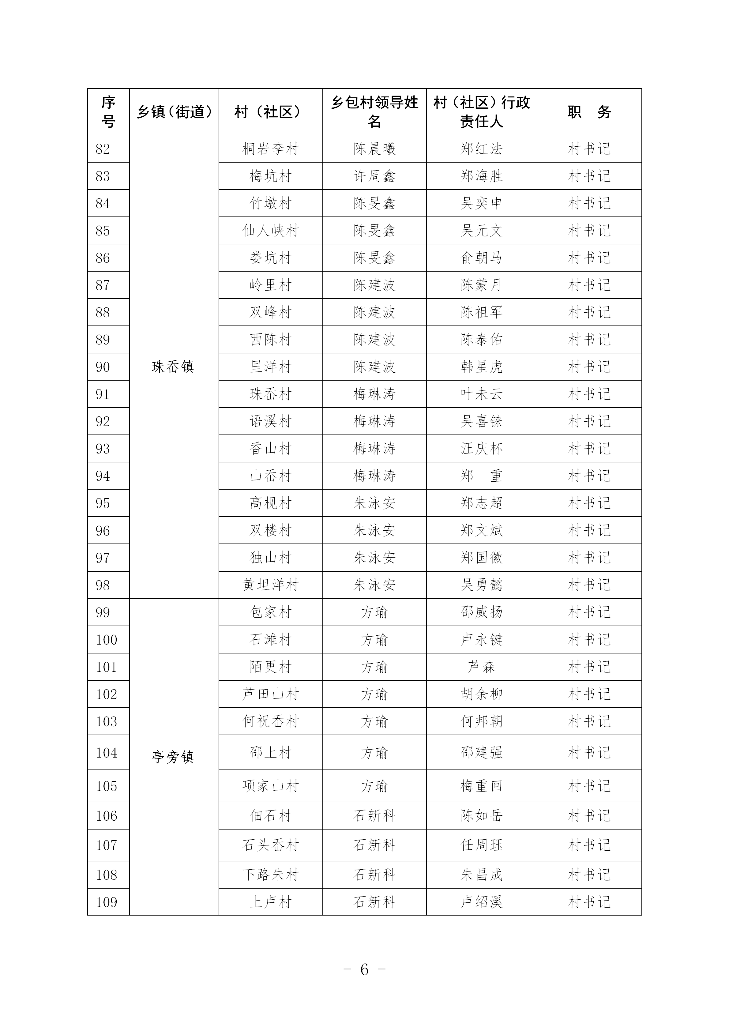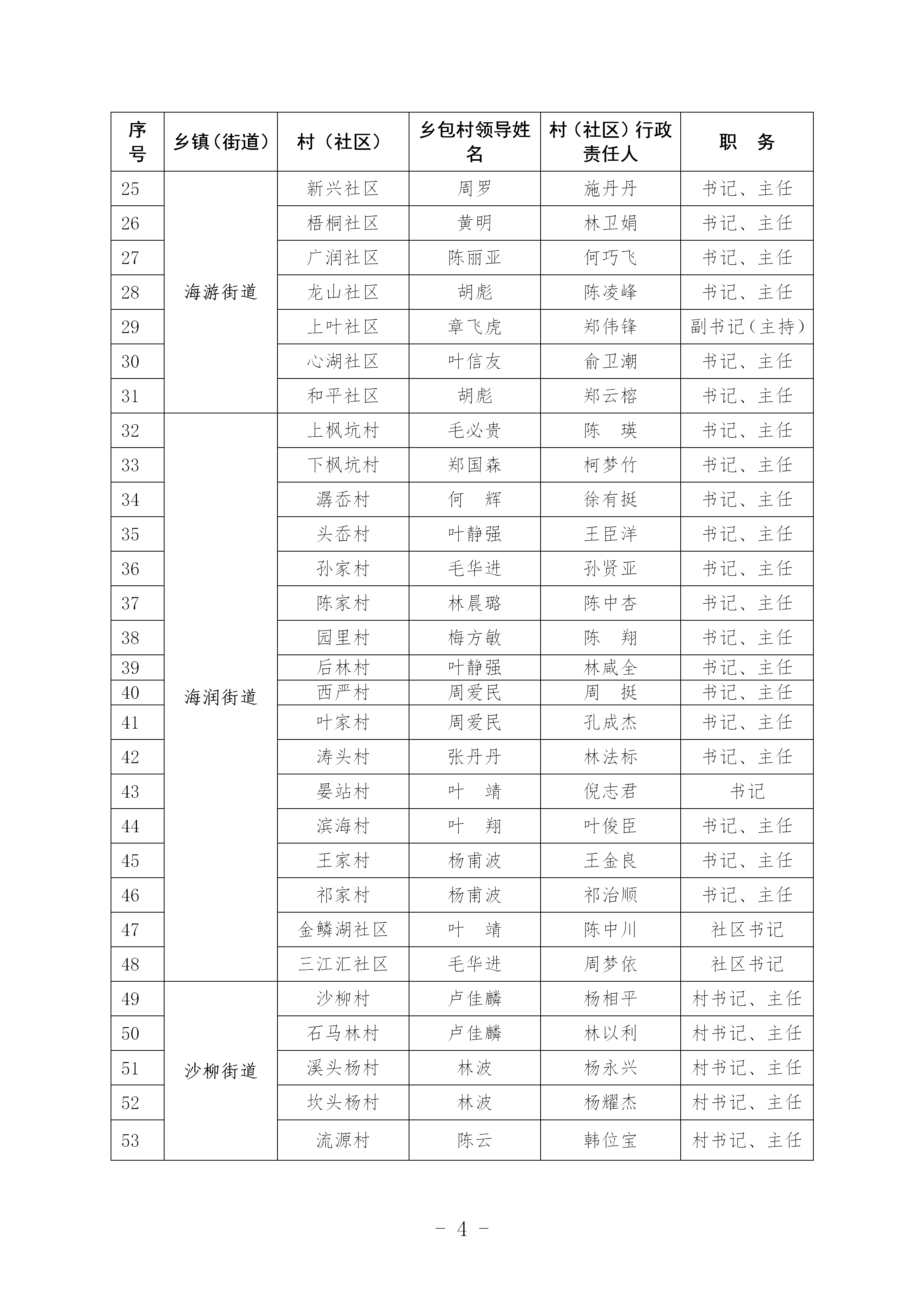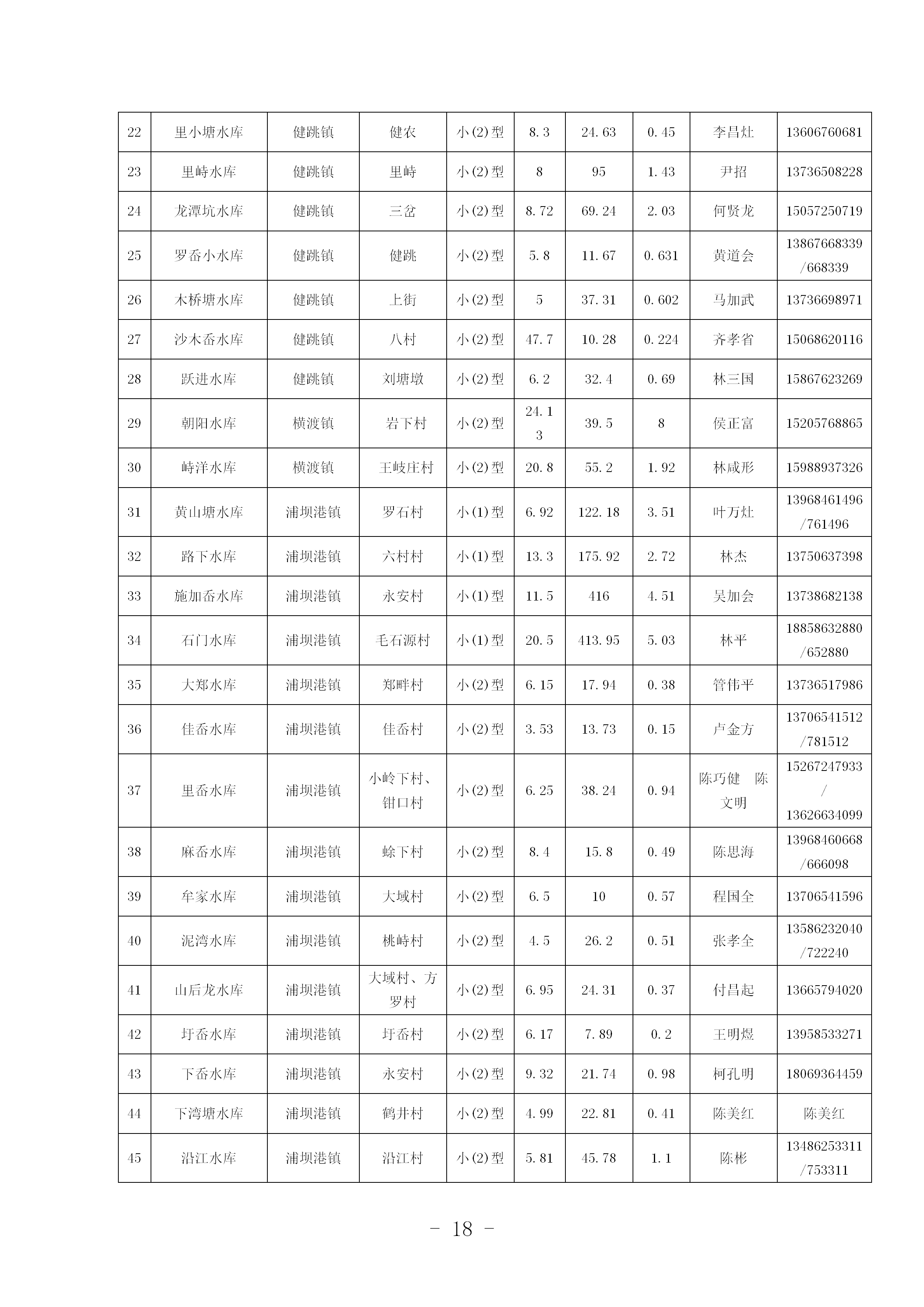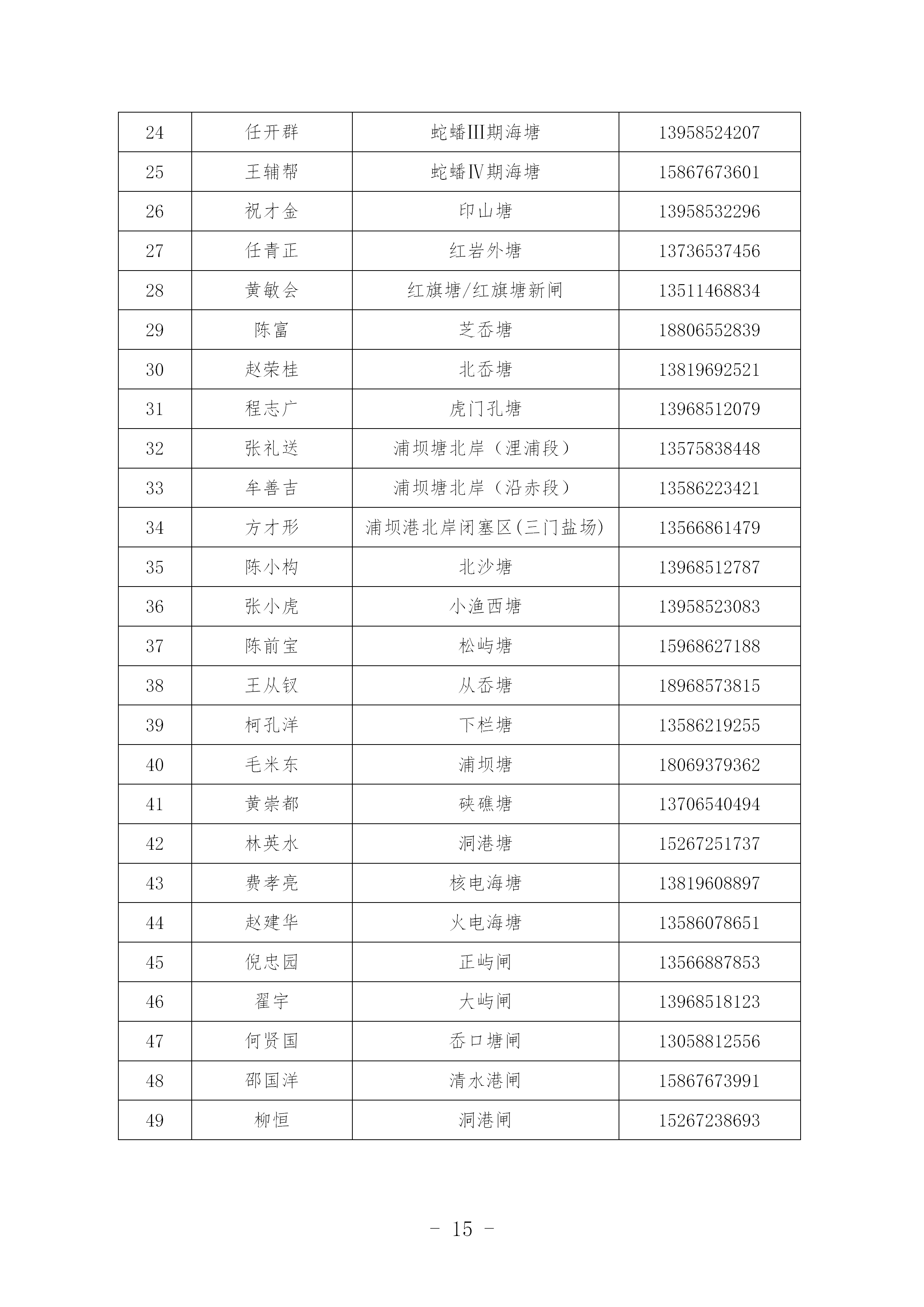 为做好2026年度基层防汛防台体系管理工作,根据《中华人民共和国防洪法》、《浙江省防汛防台抗旱条例》等法律法规和省防指有关文件要求,落实以行政首长负责制为核心的各项防汛防台抗旱责任制,现将我县中型水库大坝安全管理责任人、2026年三门县防汛防台抗旱行政责任人、2026年三门县汛防台抗旱“乡领导包村”包保责任人、村级行政责任人等名单予以公布。如遇责任人变动,新任者即为责任人。