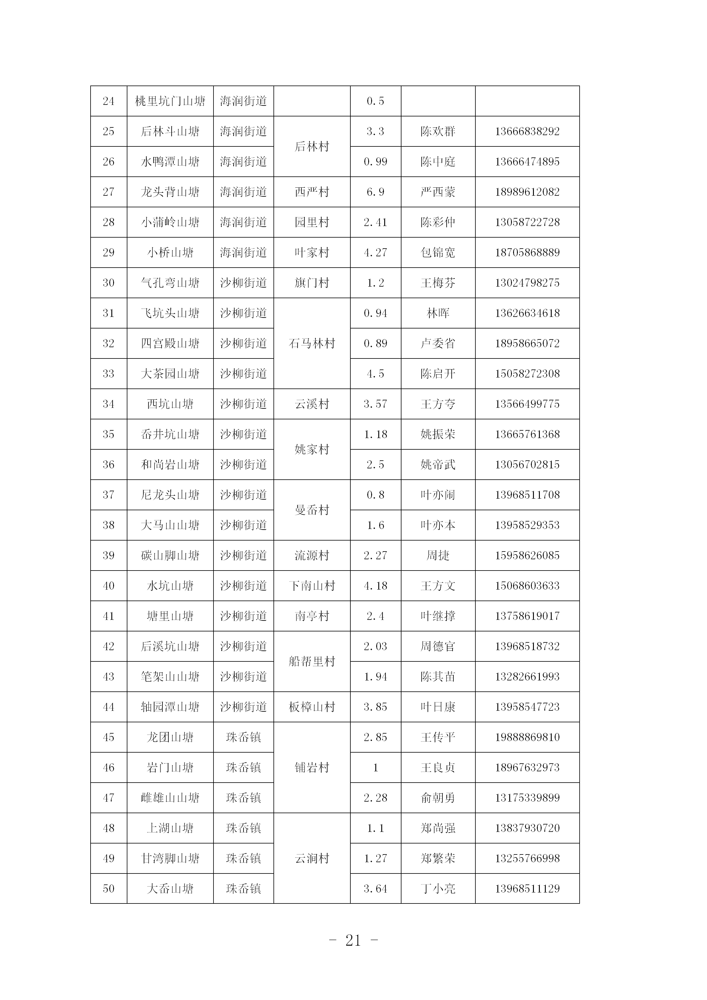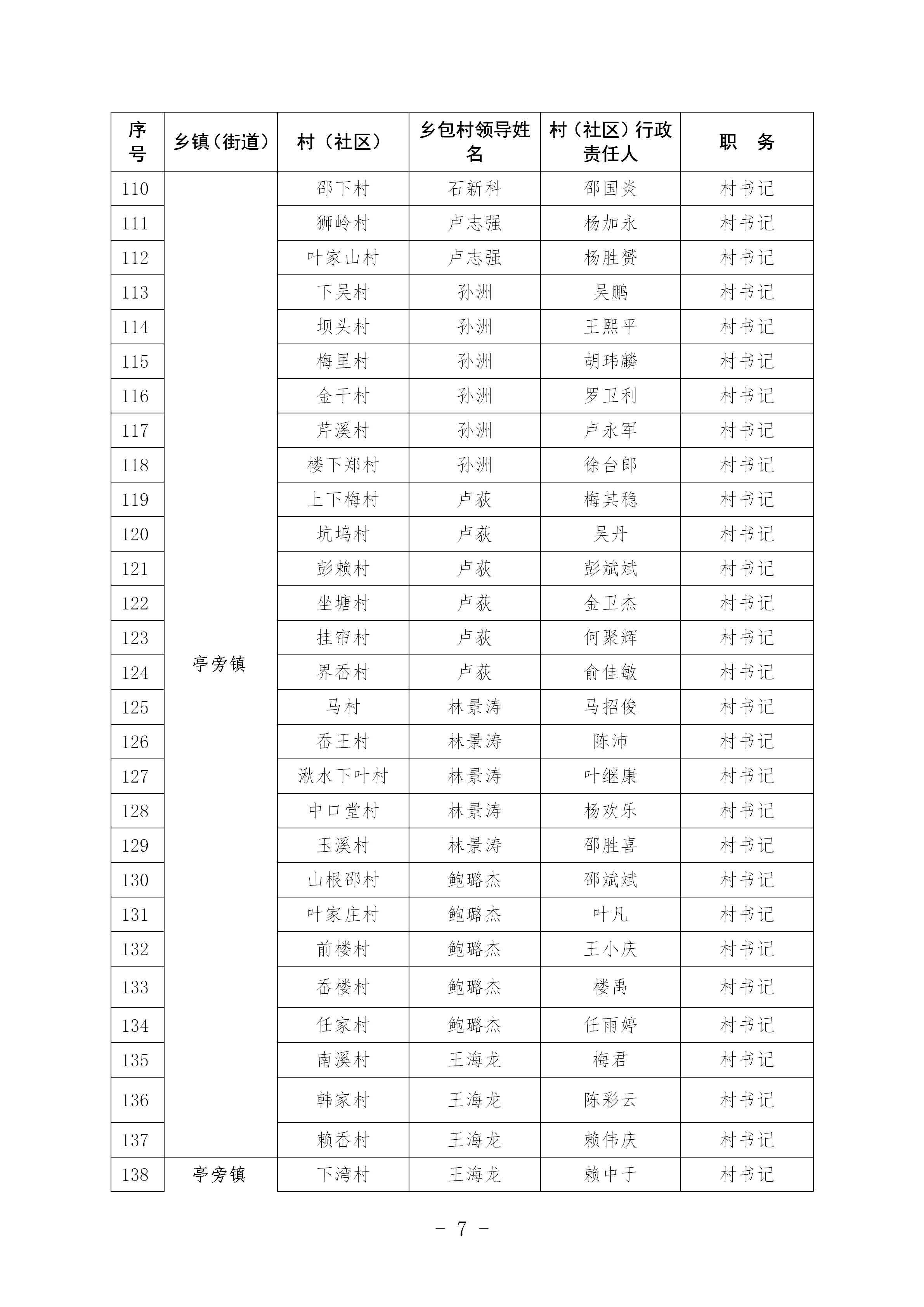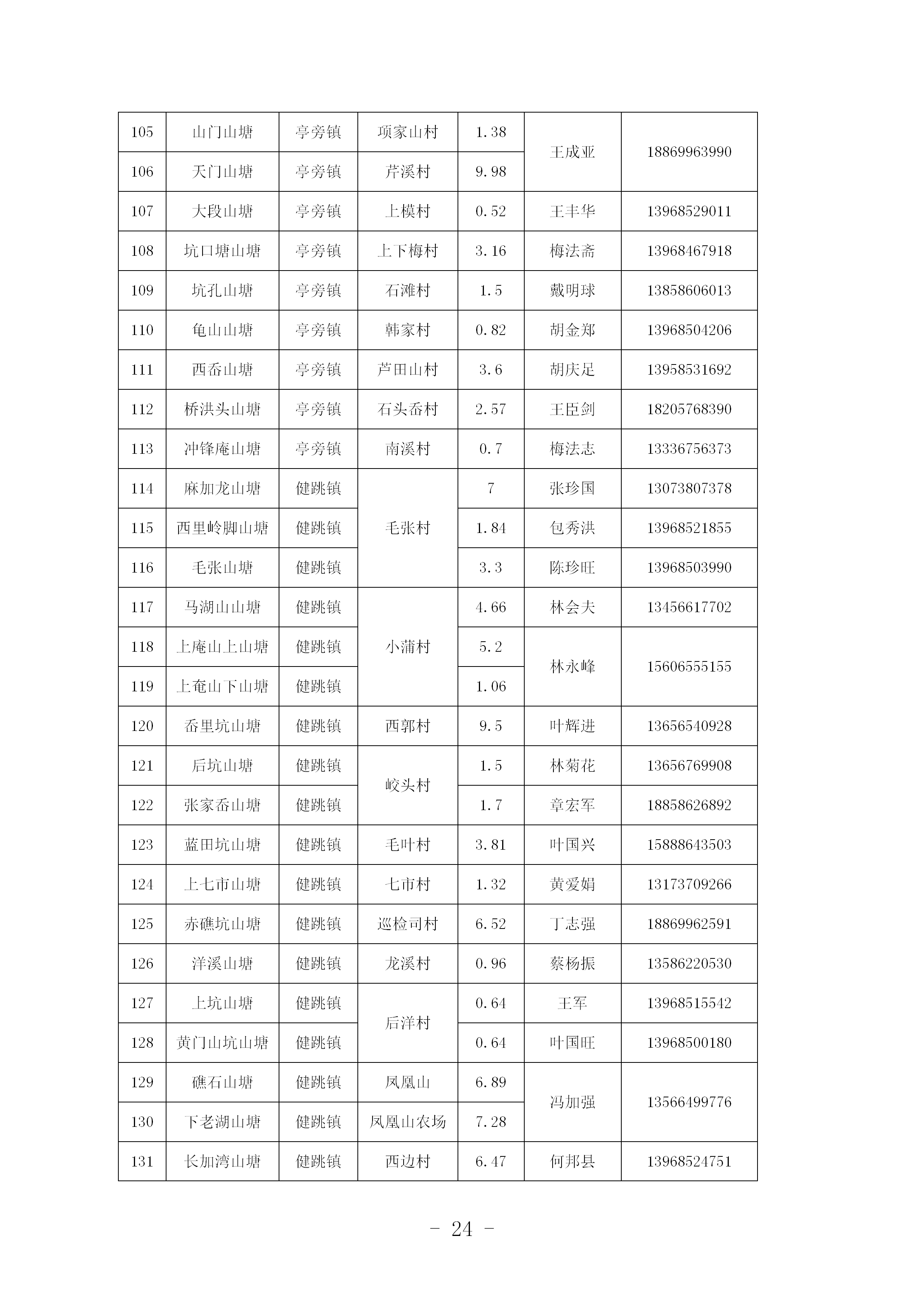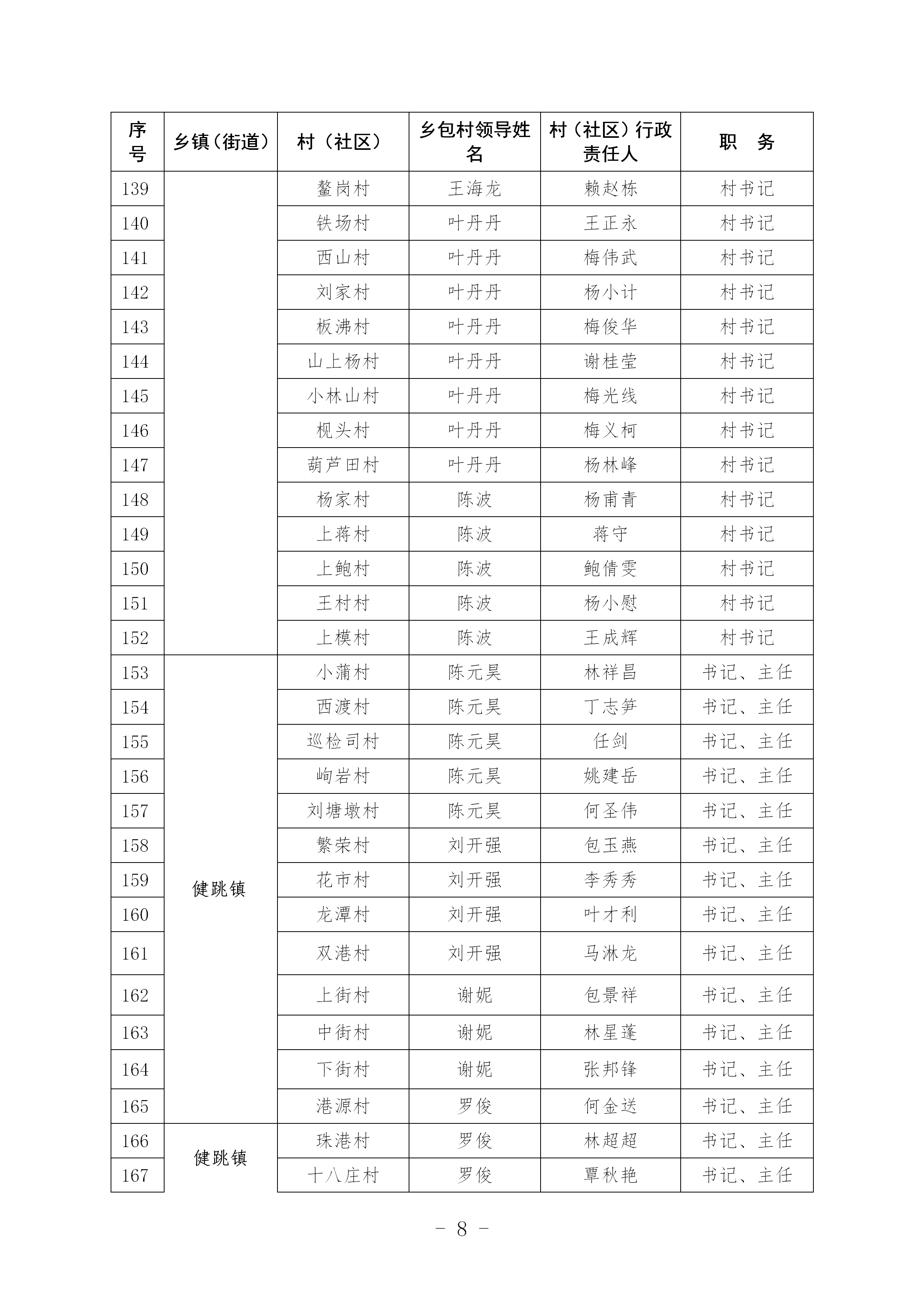 为做好2026年度基层防汛防台体系管理工作,根据《中华人民共和国防洪法》、《浙江省防汛防台抗旱条例》等法律法规和省防指有关文件要求,落实以行政首长负责制为核心的各项防汛防台抗旱责任制,现将我县中型水库大坝安全管理责任人、2026年三门县防汛防台抗旱行政责任人、2026年三门县汛防台抗旱“乡领导包村”包保责任人、村级行政责任人等名单予以公布。如遇责任人变动,新任者即为责任人。