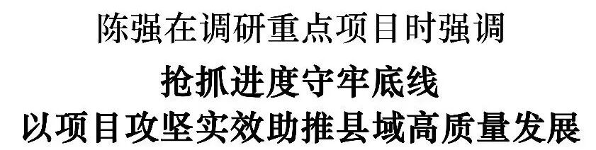 陈强强调,二季度是项目建设的黄金期和攻坚期,各级各部门要紧盯节点抢进度,倒排工期、挂图作战,集中力量破解难题,确保三门金鳞体育中心等重大项目按期交付、如期投用。要守牢底线保安全,统筹发展与安全,严守安全生产、工程质量和生态环保底线,坚决防范各类风险隐患。要靠前服务强保障,主动下沉一线,及时解决项目推进中的堵点难点问题,强化要素保障,为项目建设提供全方位支持。