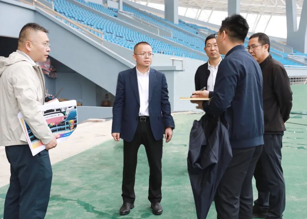 “现场进度如何?还有哪些困难?”陈强一行边走边看,实地检查了场馆草坪养护、跑道铺设及赛事功能用房准备情况。针对赛事筹备,陈强指出,要广泛征集广大球迷和市民的意见建议,对体育馆进行功能优化与细节完善,精细化做好赛事组织与服务保障,全面提升观赛体验,确保赛事圆满成功。
