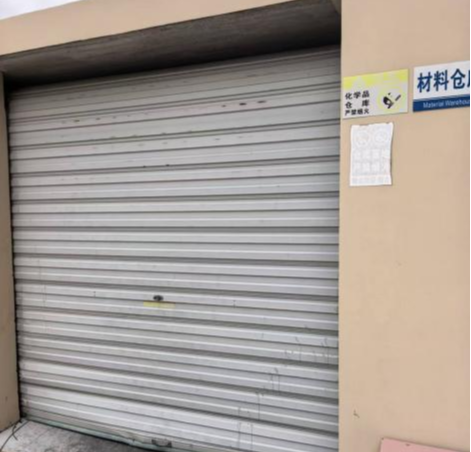 3.油漆仓库采用卷帘门,未设置向疏散方向开启的平开门。