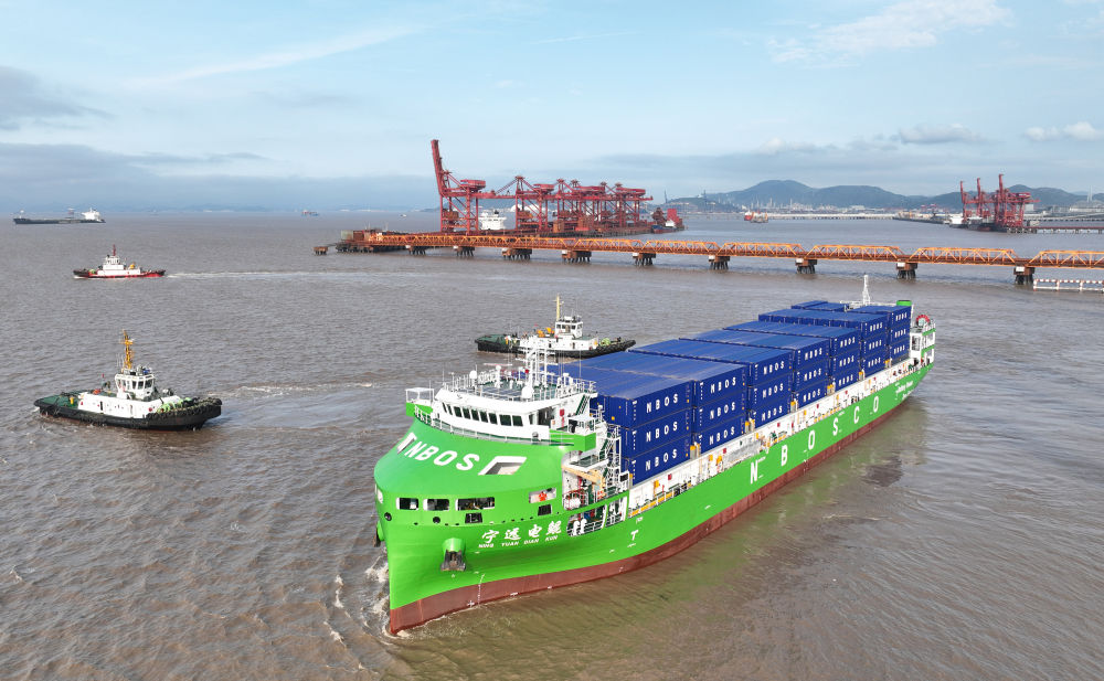 4月15日,全球最大、国内首艘万吨级纯电动智能集装箱海船“宁远电鲲”轮从宁波舟山港北仑港区解缆启航。具备全天候视觉感知、智能航线自主规划等全场景智能功能的“宁远电鲲”轮以箱式电池作为核心动力,预计每年可节约燃油580吨,减少二氧化碳排放量超1400吨。