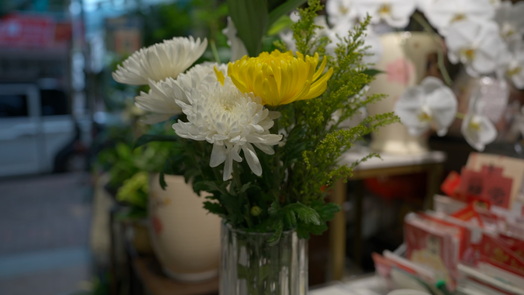 在上洋路的某花店内,店主章云注意到,今年清明花材的选择更加多样。“以前以黄菊、白菊为主,现在白玫瑰、百合、向日葵、洋桔梗等都受欢迎,很多人按逝者生前喜好定制花束。”她说。