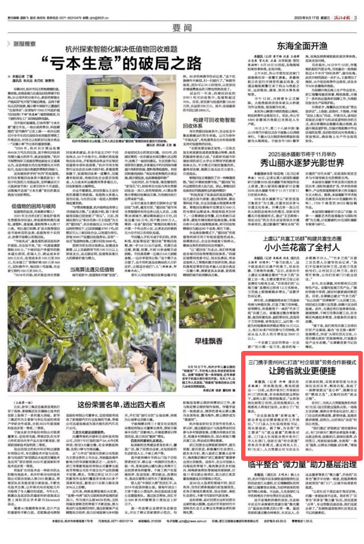 “企业发展急需‘新鲜血液’,就业者也迫切需要稳定的工作岗位。”三门县人力社保局党组书记、局长章益说。据了解,为实现“用工需求”与“就业意愿”的精准对接,三门县人社局联合贵州省兴仁市人社部门,创新打造“村企联盟”劳务合作新模式,通过两地人社、村(社区)、人力资源公司与企业五方联动机制,实现求职信息与企业岗位实时共享、精准匹配,架起了一座跨省就业“连心桥”,既解企业的“燃眉之急”,又畅村民的“就业之路”。