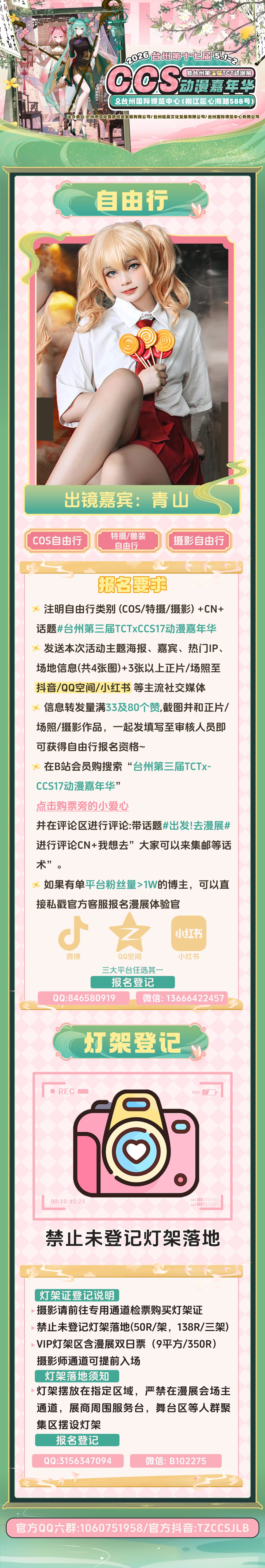 活动时间:5月1日—5月2日 活动地点:台州国际博览中心5号馆(海路588号) 购票渠道:B站、抖音平台,搜索「TCT」或「CCS漫展」即可购票 |