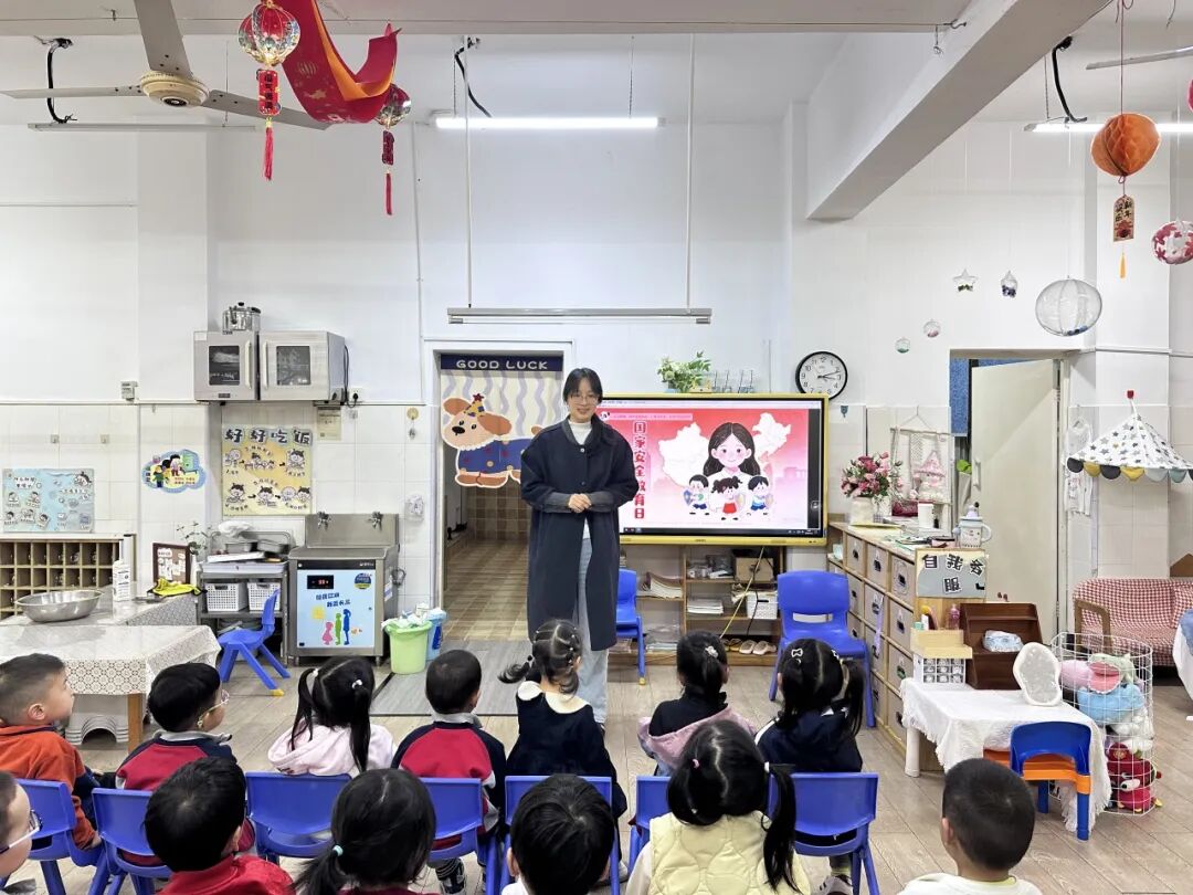 三门县珠岙镇中心幼儿园的教师结合幼儿年龄特点,通过趣味动画、安全知识竞答、情景互动等形式,围绕爱护国旗国徽、守护身边安全等内容,让孩子们在轻松氛围中学习国家安全知识,树立安全意识。孩子们积极参与、踊跃发言,懂得了国家安全与日常生活息息相关,也在心中种下了“国家安全、从小做起”种子。