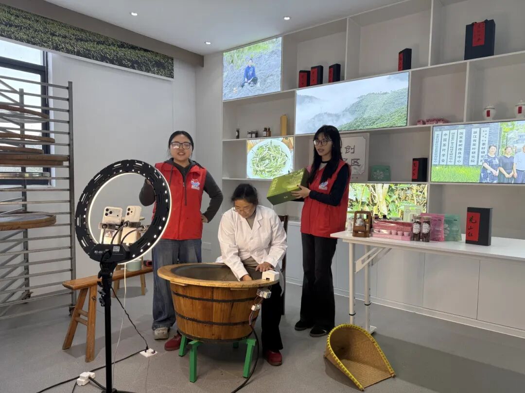 与此同时,在云茗共富工坊的直播间内,另一番热闹景象正精彩上演。作为由党建牵头搭建的共富平台,这里配备专业齐全的直播设备,党员志愿者化身“带货主播”,热情洋溢地向屏幕另一端的网友,详细介绍龙翔谷福茶的优良品质,以及冻干茶粉、茶咖等特色茶叶衍生品。直播间里,专业炒茶师傅现场亮出家传技艺,鲜叶入锅、翻炒、起锅,一系列动作娴熟流畅、一气呵成,浓郁的茶香透过镜头扑面而来,让网友们直观感受珠岙茶叶的匠心坚守与独特风味。