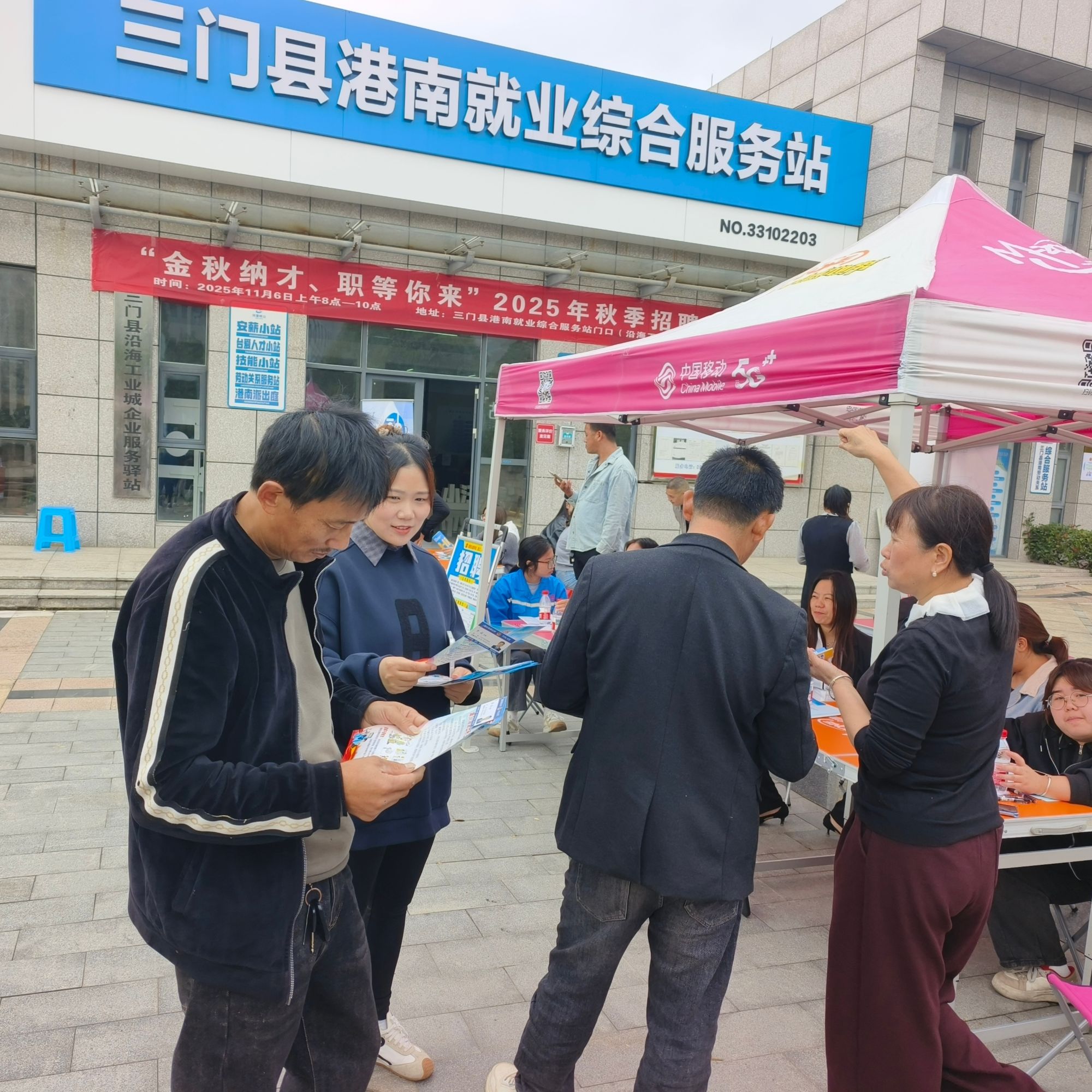 昨天上午,三门县港南就业综合服务站门前热闹非凡。随着“金秋纳才、职等你来”2025年秋季招聘会正式启幕,各企业展位前很快形成咨询热潮。