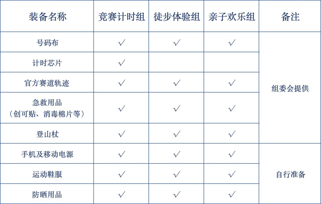 为提倡无痕山林,请各位选手自带水具!参赛包内有餐券 请各位选手妥善保管!