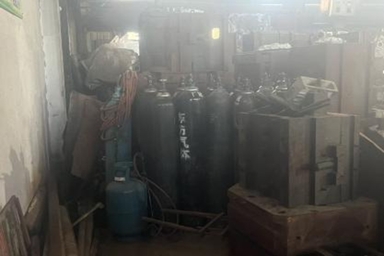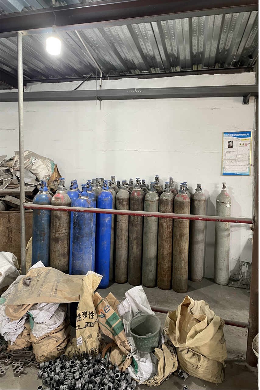 3.气瓶混放于车间内,未设置气瓶库分类存放;
