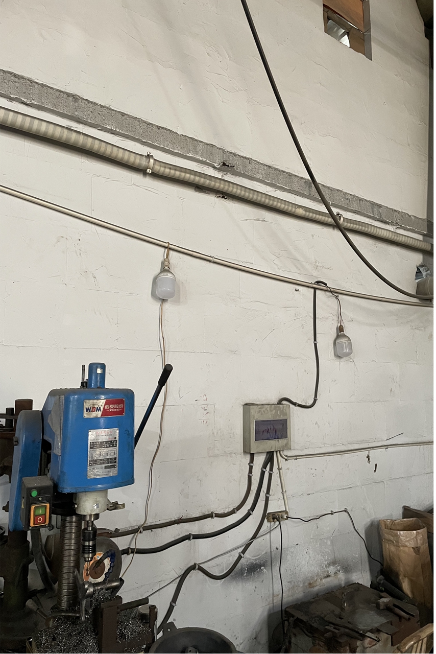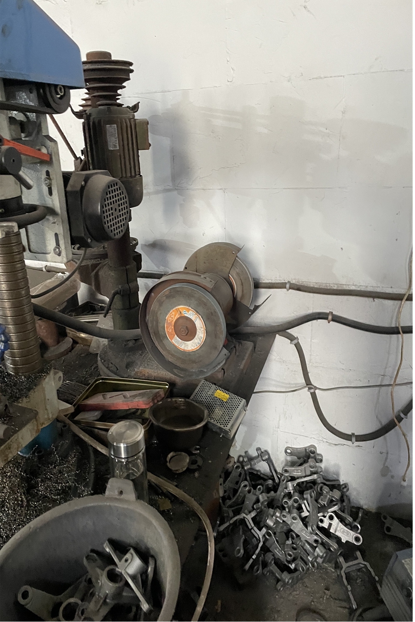 1.3号厂房门口处切割机手柄无绝缘防护罩;