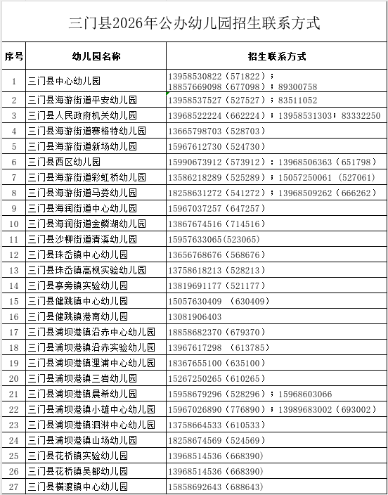 为贯彻落实《中华人民共和国学前教育法》《教育强国建设规划纲要(2024~2035年)》等法律和文件精神,切实规范幼儿园招生行为,结合我县实际,特制定三门县2026年幼儿园招生工作实施办法。