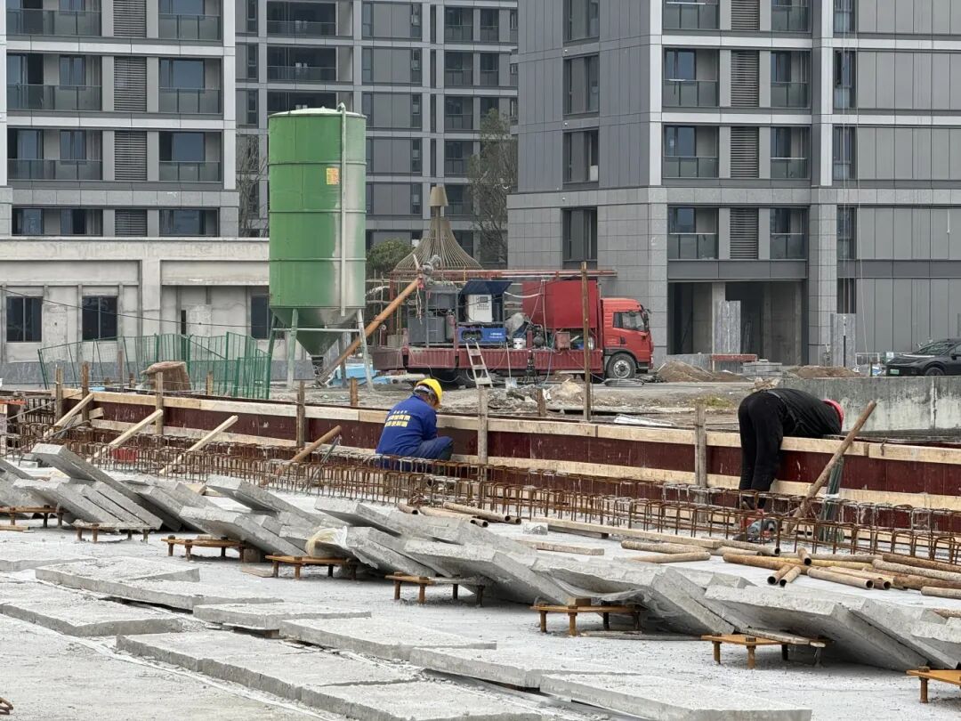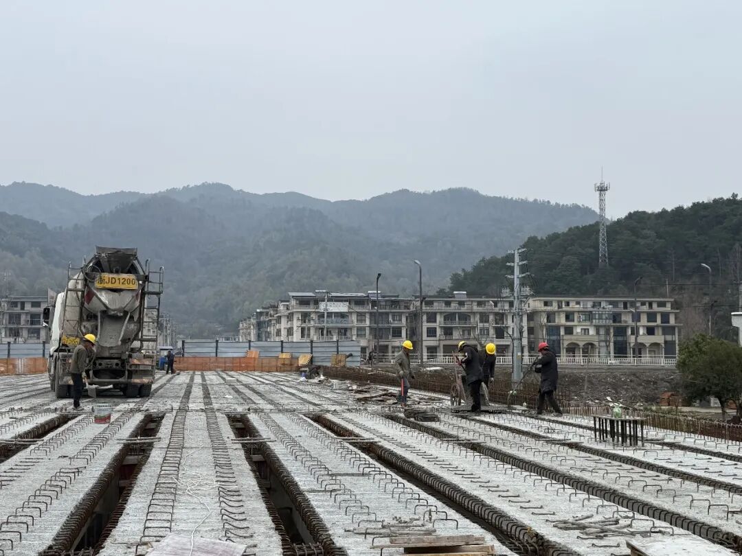 “善岙蒋大桥于2025年5月10日开工,目前桥梁主体工程已全部完成,接下来重点推进沥青铺设,预计5月1日全面通车。”施工现场负责人潘武群介绍。为抢抓工期,复工后项目人员增加一倍,吊车、铲车等设备全部上阵,桥面铺装、人行道浇筑等多道工序同步推进。