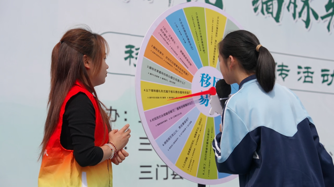庄重的缅怀环节结束后,现场氛围随之转换,沉浸式互动体验区点燃了大家的热情。“指尖上的清明”非遗区里,手艺人现场制作麻糍,香气四溢;学生们跟着志愿者学编柳编花环,在动手间读懂清明插柳寄思的传统意蕴。“新风里的竞答”区域人气最旺,转盘答题、套圈游戏轮番上阵,大家争相作答,在轻松氛围里掌握移风易俗、清明防火、文明祭扫等实用知识,让文明新风在玩中学、在乐中记。“柳枝代表思念,能够寄托对亲人的思念。现场答题还学到了文明祭扫和防火知识,既好玩又长见识!”学生陈展逸兴奋道。