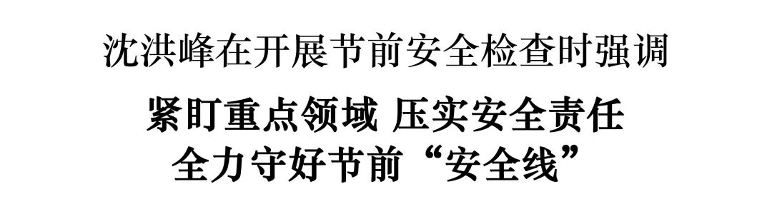 沈洪峰强调,各相关部门、乡镇(街道)要始终绷紧安全这根弦,以“时时放心不下”的责任感,紧盯安全底线、全力排查隐患。要压实主体责任,聚焦重点领域、重点行业,建立问题整改清单,严格实行闭环管理,确保各类风险可防可控;要强化部门协同,细化应急预案,切实做好节日期间值班值守和突发事件处置工作,全面提升安全防范能力,确保全县人民度过一个平安、文明、祥和的清明假期。