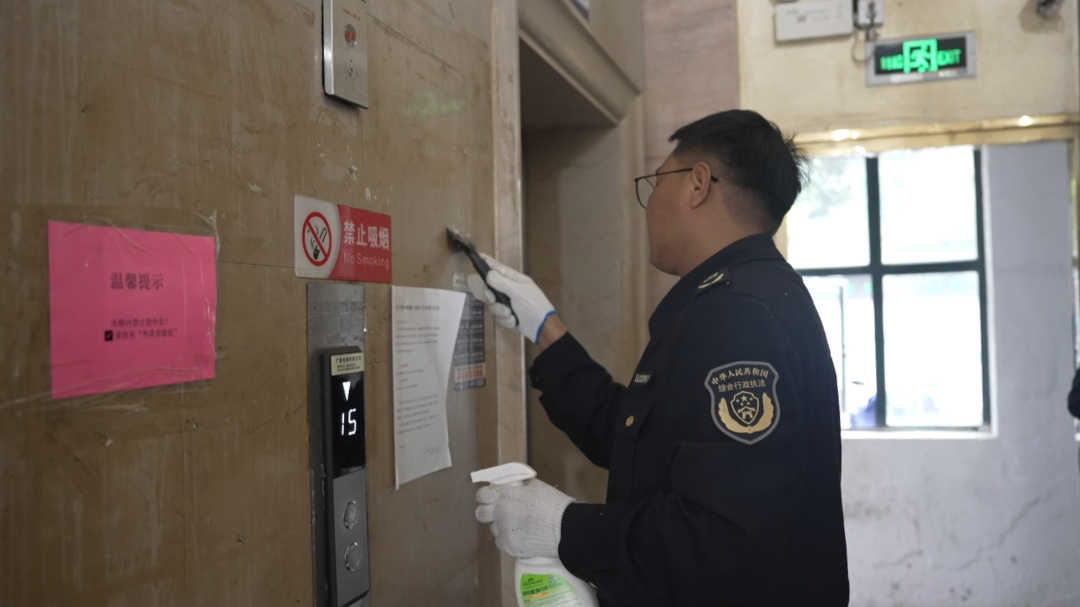 同样经历蜕变的还有金茂大厦。这个拥有900多户居民的小区,此前曾是小广告“重灾区”。小区物业经理季丹玲回忆道:“那时候每家每户门上都被贴满了各种小广告,层层叠叠的,看着特别糟心。”面对这一情况,物业工作人员逐层逐户开展集中清理,铲的铲、刮的刮、擦的擦,一点一点还墙面和门户本来面目。经过连续多轮整治,如今小区内的小广告已基本清理完毕,居住环境恢复了清爽整洁的模样。
