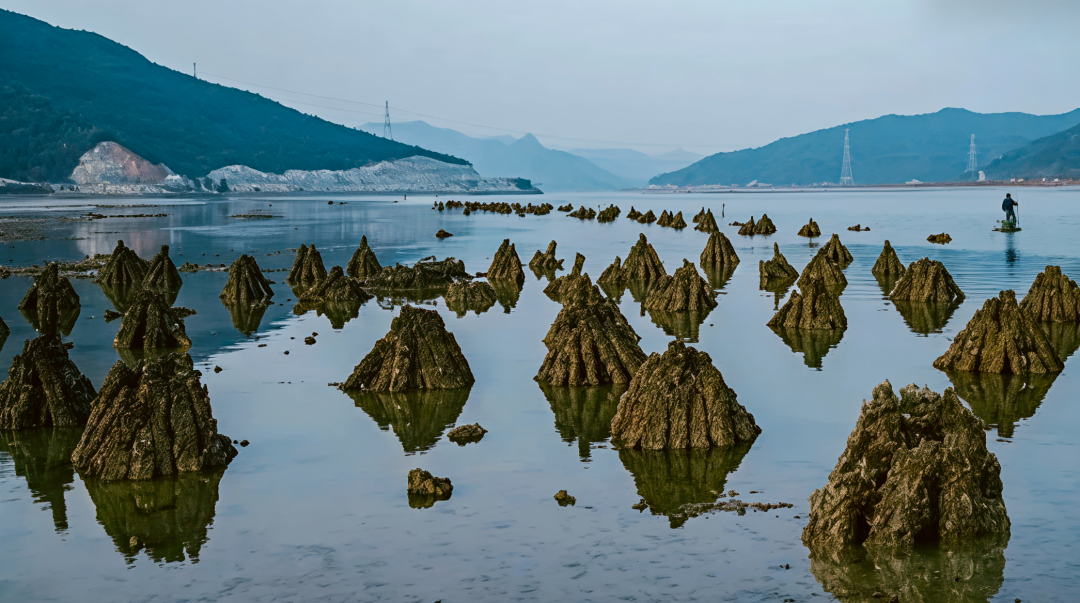 如今,国家级“蓝色海湾”生态修复项目在蛎江滩落地,规划总投资4.56亿元,包含滨海湿地修复、滩涂整治及29.12公顷人工牡蛎礁修复。通过投放优化孔隙结构的人工礁体,使得牡蛎礁面积增加约6.8倍。“修复目的旨在恢复本地牡蛎种质资源,为产业可持续发展提供生态基础。”村党总支书记林咸撑表示。