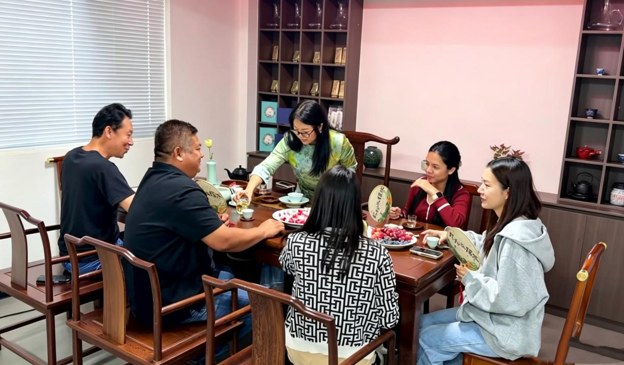 To promote the brand of Longxianggu Fu Tea from Zhu'ao Town Sanmen county, inherit the traditional Chinese Fu tea culture, The China-Thailand Station Fu Tea Tasting Event, themed “Fortune Tea, Sino-Thai Harmony” , was warmly held at Siam Mat Industrial Co., Ltd. in Thailand. With tea as the medium, this event built a bridge for cultural communication between China and Thailand, allowing Thai friends to experience the unique charm of Chinese Fu tea up close and effectively enhancing the overseas popularity and influence of Longxianggu Fu Tea.