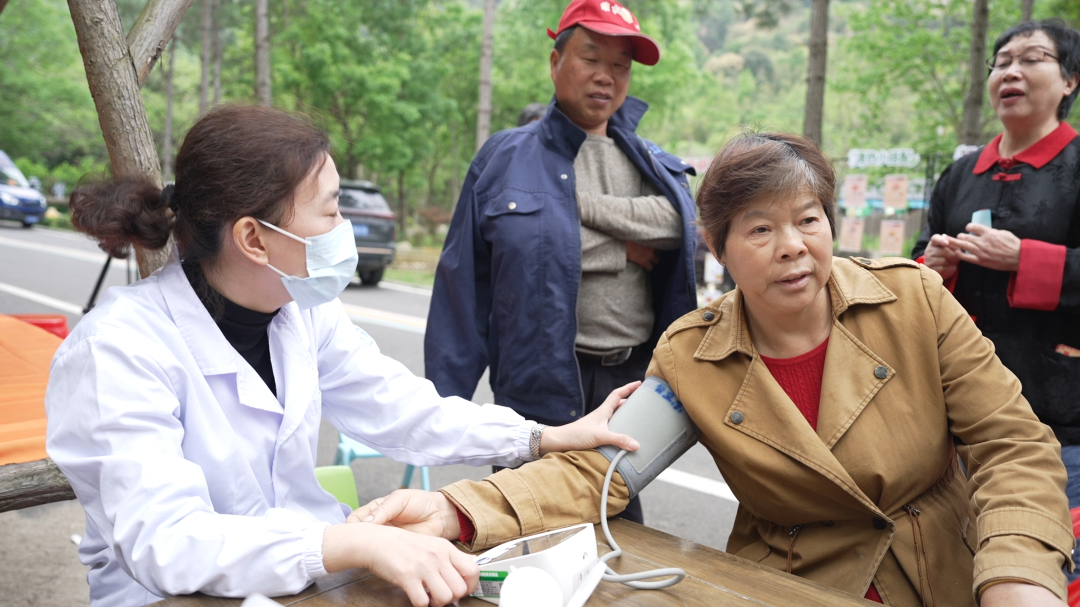集市不大,却样样实在。16个摊位沿广场两侧排开,上千张体验券很快发到老人手中。量血压、测听力、口腔检查、免费理发……每个摊位前都渐渐围拢了人。县人民医院的医护人员一边测量,一边轻声叮嘱;理发师手起剪落,动作利落;磨刀石嗞嗞作响,戏曲唱段悠悠传来,场面热闹又祥和。