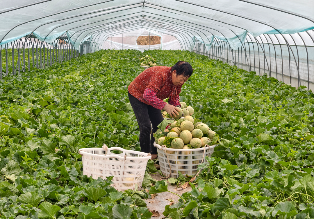 去年冬天比较暖和,她提早半个月种下瓜苗,如今这些提前培育的甜瓜长势喜人,比周边农户的甜瓜更早上市,抢占了市场先机。“不仅早上市,我的瓜还比别人的大,这样一来,单价可以高出一截。”林美红说。