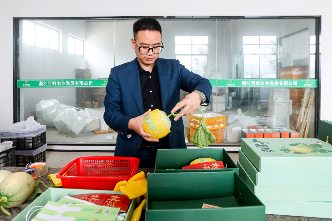 “甜瓜刚上市,每天能销售五六千斤,其中有五六百斤都是精品礼包。”浙江百鲜农业发展有限公司采购员张振豪说,公司对收购的甜瓜进行涮洗、分拣,精选优质瓜装入专属礼盒。