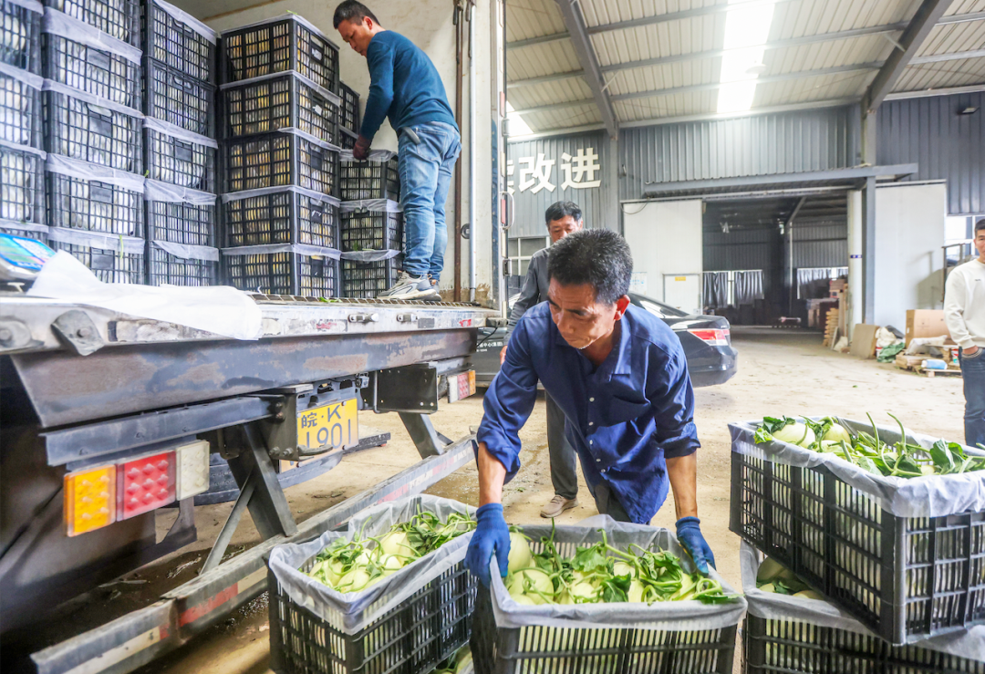 “我们都是一车车拉,今天拉了3000多斤,主要有晓蜜、玉姑、酥灿。”为了能抢“鲜”上市,行贩田春香与家人早早地从温州赶来,“早些年刷抖音看到这里有瓜,来了后发现品质不错、好卖,就年年都来进货。”