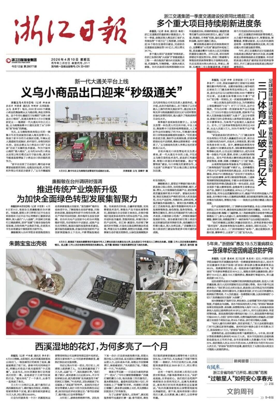 《浙江日报》头版报道